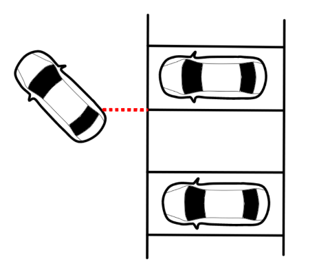 1. 먼저 차량을 주차할 공간의 앞라인과 평행하게, 대략 1~1.5m 간격을 두고 주행한다. 주차할 공간의 왼쪽 끝 선이 내 어깨선과 일치할 때, 핸들을 (다 감는다는 생각으로) 감기 시작하면서 계속 주행한다.