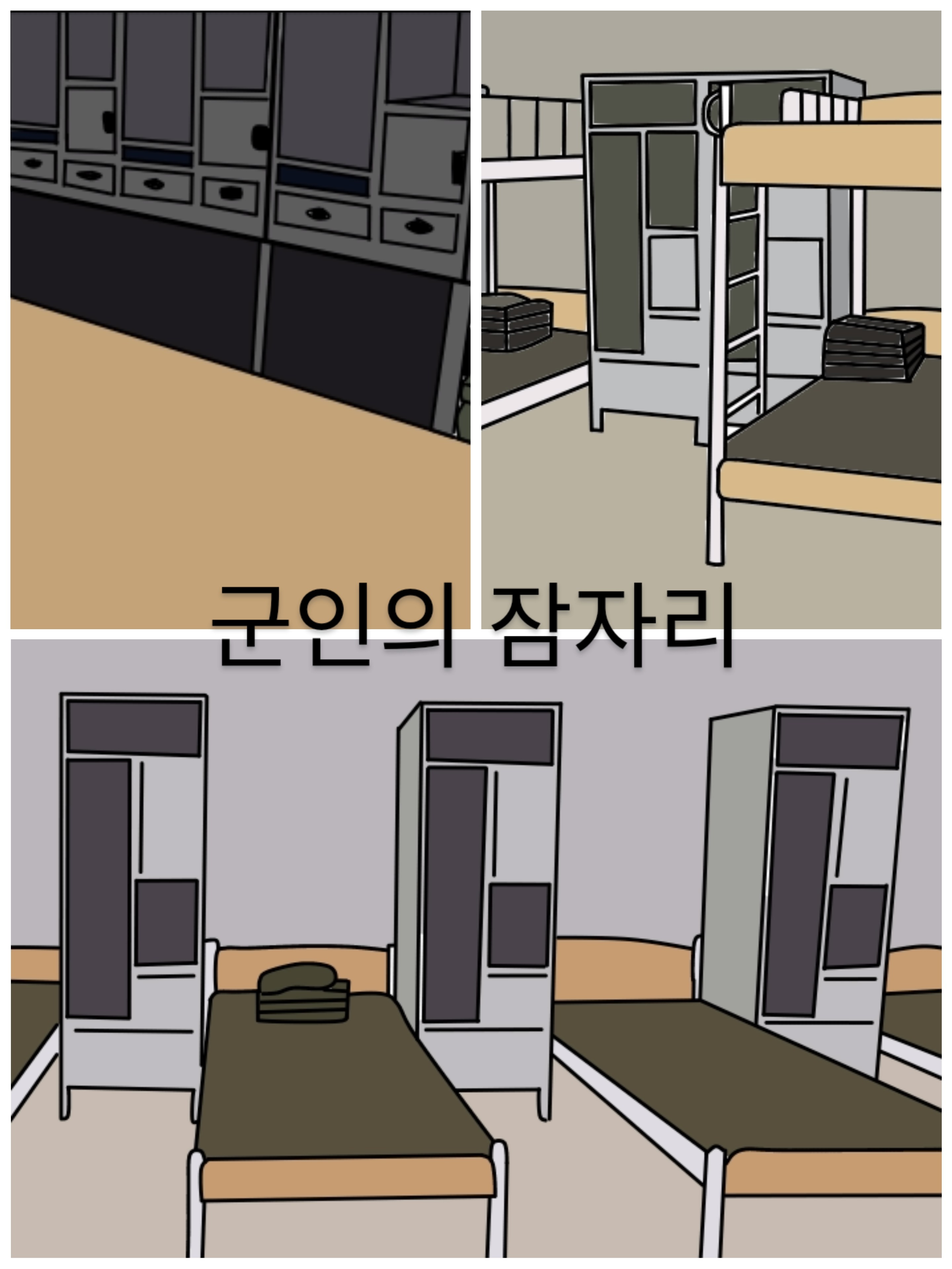 그래도 개인적으로 정말 좋은 기회를 얻었다고 생각하는게, 나는 다양한 형태의 생활관을 겪어봤다. 선임들 이야기를 들어보면 군생활 내내 한 가지 생활관만 겪어보는 경우가 허다하기 때문에, 대리경험이라도 할 수 있도록 내 기억을 더듬어 적어내려보겠다.