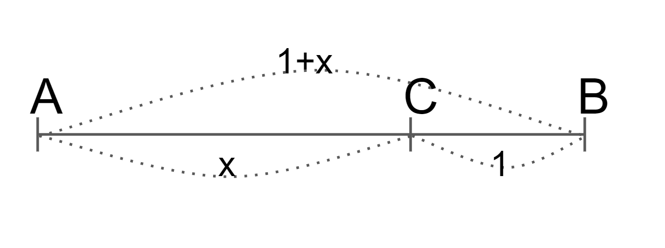 $$let \ \ \overline{AC} = x, \ \overline{BC} = 1$$