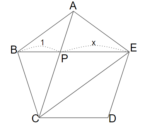 $$let \ \ \overline{BP}=1, \ \overline{PE}=x$$