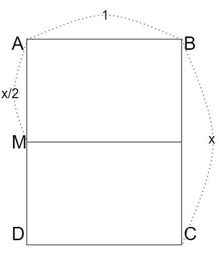 $$let~~~ \overline{AB}=1,~\overline{AD}=x~~\Rightarrow~\overline{AM}=\frac{x}{2}$$