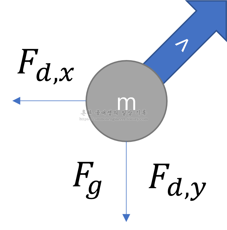 \( F_d \) : 항력, \( b \) : 항력계수, \( v \) : 물체의 속력